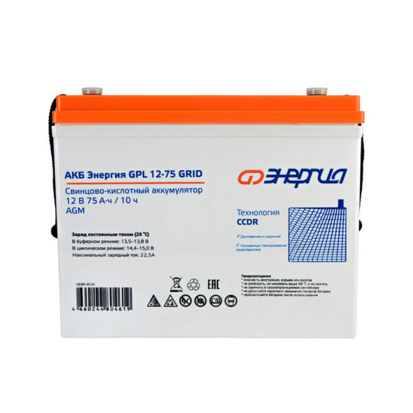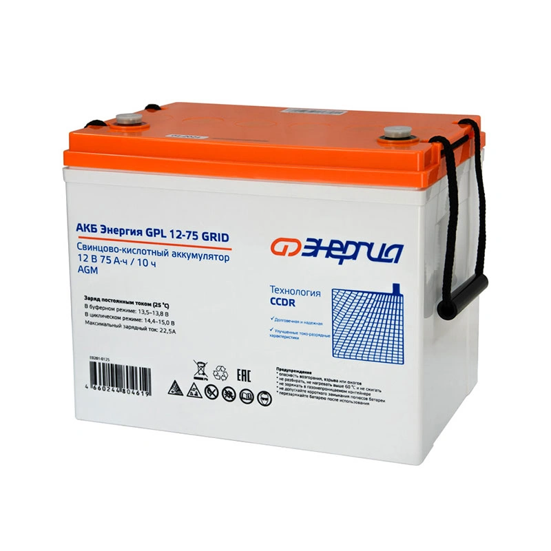 Аккумуляторные батареи Энергия GPL GRID изготовлены по технологии AGM с применением технологий CCDR и TTR. АКБ для работы в буферном режиме с ИБП. Для электропитания устройств охранной и пожарной сигнализации, информационных и телекоммуникационных систем при работе которых не допускается перерывов в электропитании.