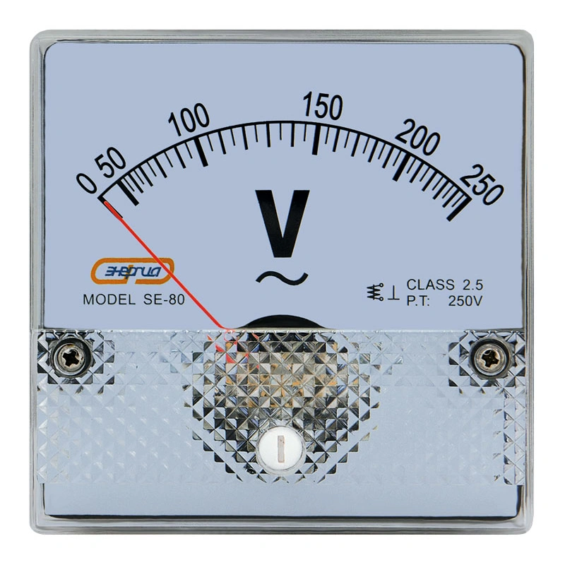 Исполнение: щитовое (80 × 80 мм) Индикация: аналоговая (стрелочная)