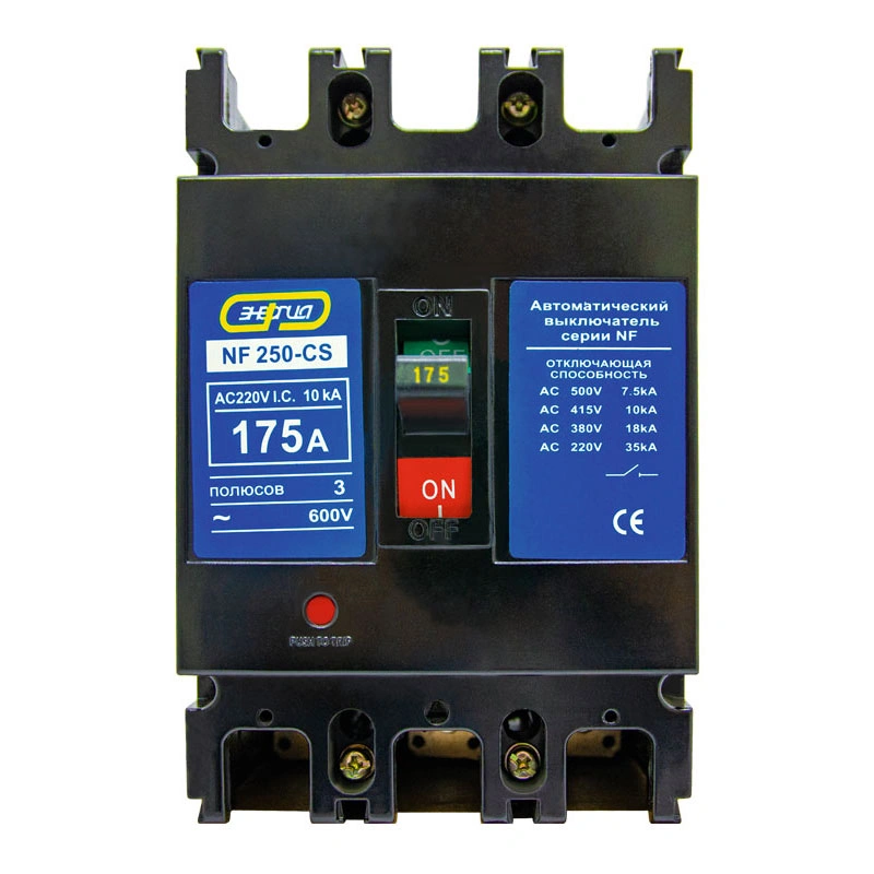 Автоматические выключатели серии NF Энергия предназначены для эксплуатации при номинальном рабочем напряжении до 600 В и токовой нагрузкой от 20 до 250 А. Они производят следующие функции: