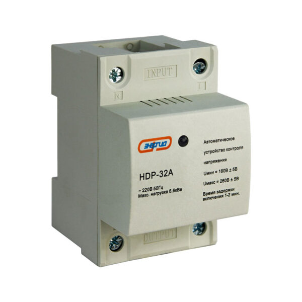 Установки срабатывания по напряжению и время срабатывания при достижении пороговых значений устанавливаются заводом-изготовителем на уровне: Umin 165–175В; Umax 260–270В; и t срабатывания от 1 до 6 сек. При включении в сеть, нагрузка включается с задержкой времени, равной времени повторного включения — 2-3 минуты (заводская установка). Реле имеет двухцветную световую индикацию наличия напряжения на входе. Светодиод горит зеленым цветом — допустимое напряжение на входе. При выходе параметров напряжения за допустимые рамки происходит срабатывание реле, отключается нагрузка и светодиод переключается на красный цвет.