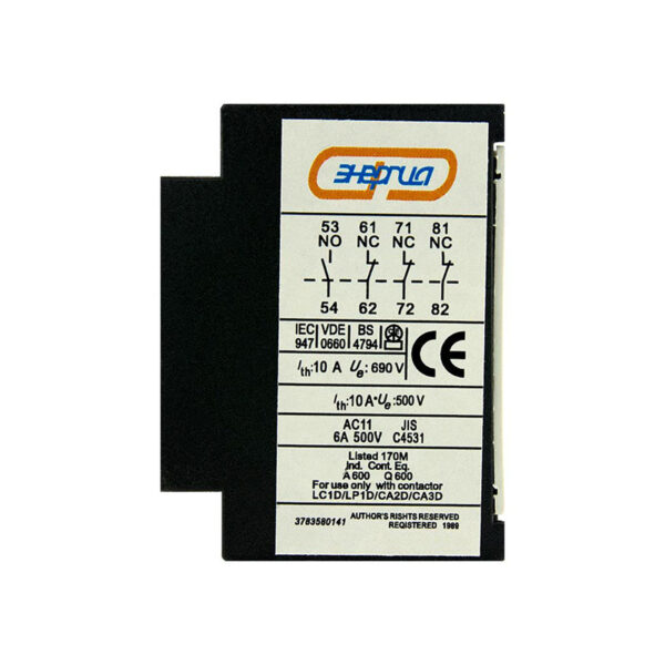 Блок дополнительных контактов является механическим устройством, без собственного потребления электроэнергии, коммутирующим своими контактами электрические цепи сигнализации и управления.