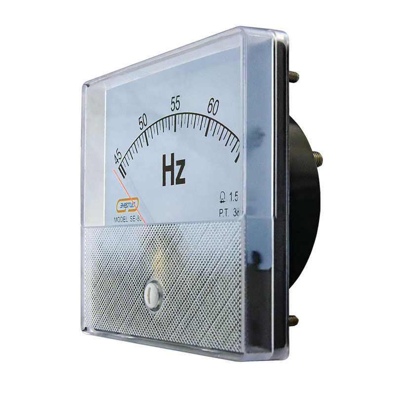 Частотомер SE-80 «Энергия» осуществляет измерение частоты путем анализа периодичности изменения напряжения в электрической цепи. Результат отображается на аналоговом стрелочном индикаторе, что позволяет быстро и удобно считывать данные. Прибор предназначен для измерения частоты переменного тока в диапазоне 45-65 Гц, встраивается в цепь напрямую, без дополнительных преобразователей. Корпус частотомера стандартного размера 80 x 80 мм, предназначен для монтажа на дверцу электрошкафа или панель управления. Простая электромеханическая конструкция обеспечивает долгий срок службы в промышленных условиях.