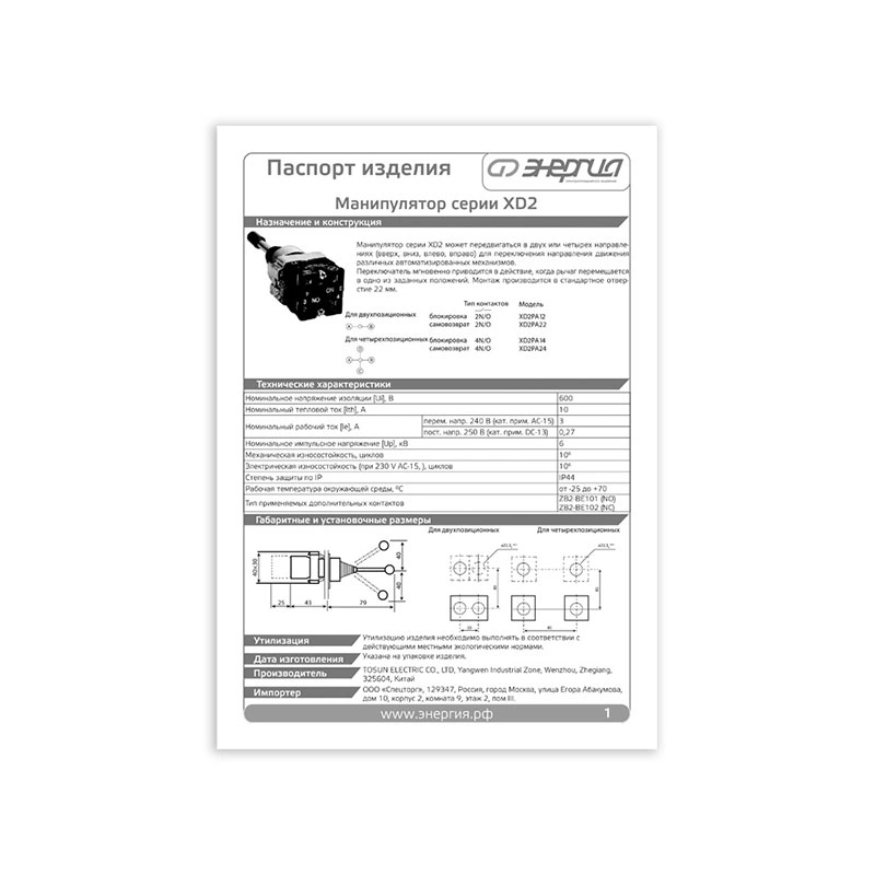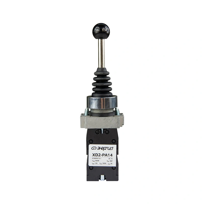 Джойстик-манипулятор XD2-PA24 — четырехпозиционный, с самовозвратом рычага в исходное состояние после отпускания. Коммутационный узел включает четыре нормально открытых контакта (4НО).
