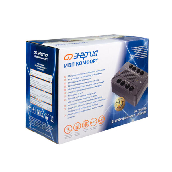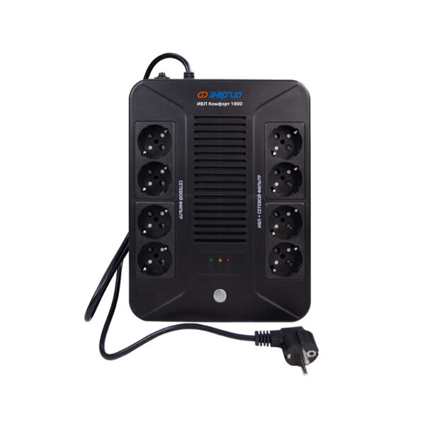 ИБП «Энергия Комфорт» подходит для обеспечения бесперебойной работы вашего домашнего или офисного оборудования: от компьютеров и систем видеонаблюдения до умного дома и платежных терминалов. Простота эксплуатации делает модель идеальной для повседневного использования.