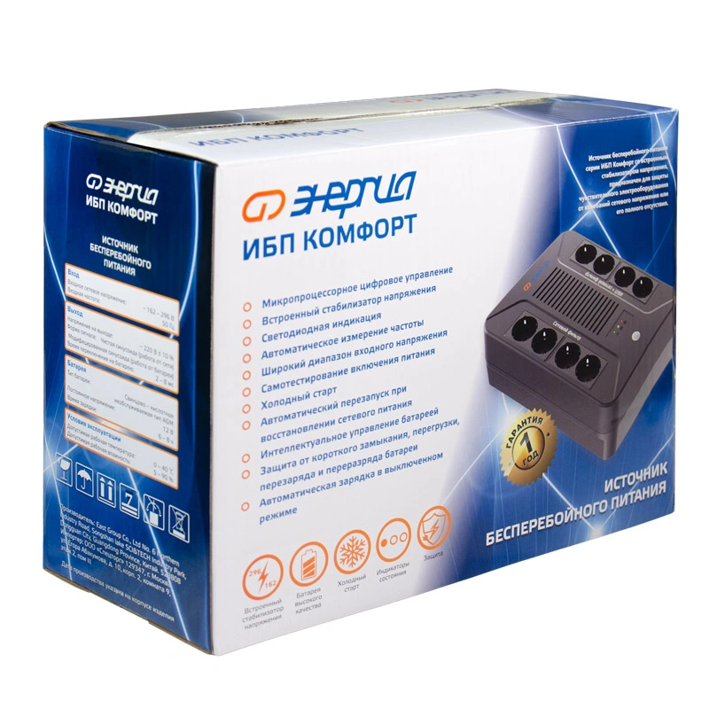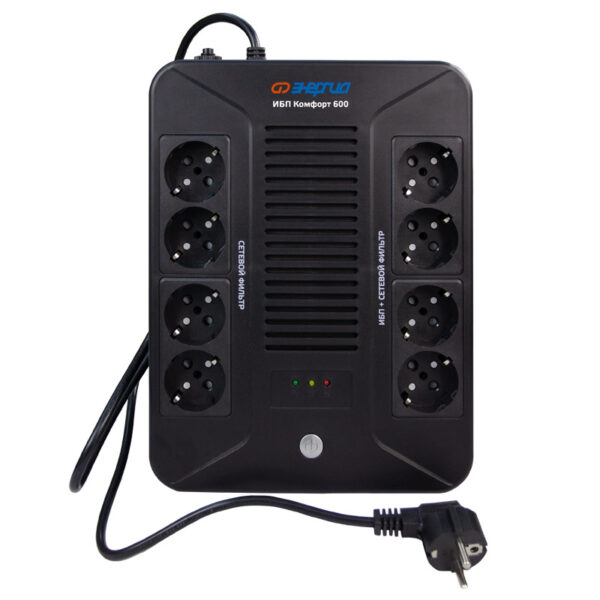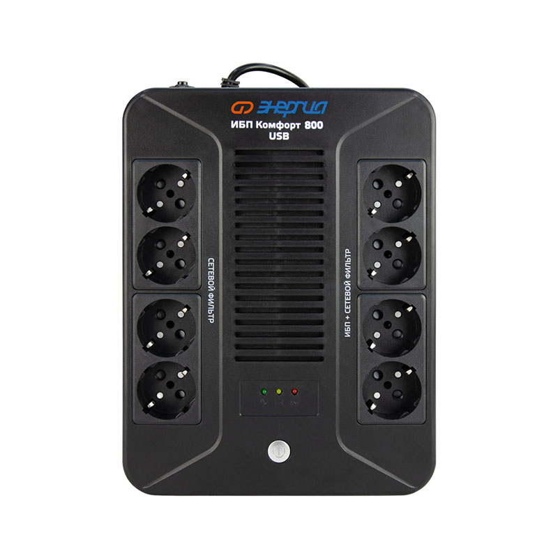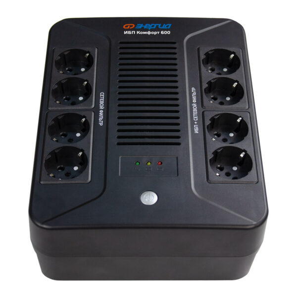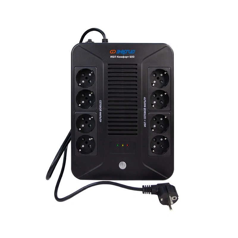 ИБП «Энергия Комфорт» подходит для обеспечения бесперебойной работы вашего домашнего или офисного оборудования: от компьютеров и систем видеонаблюдения до умного дома и платежных терминалов. Простота эксплуатации делает модель идеальной для повседневного использования.