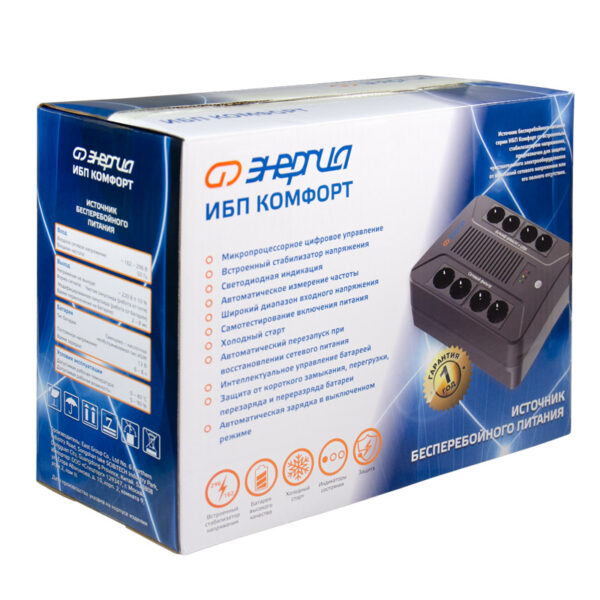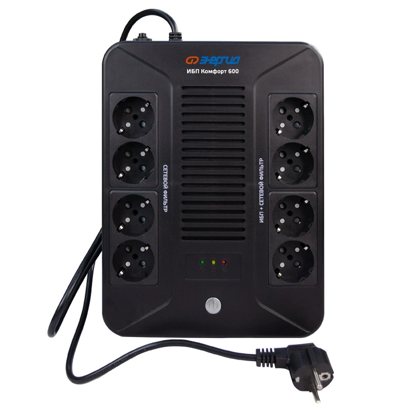 ИБП «Энергия Комфорт» — это решение для обеспечения бесперебойного питания бытовой и офисной электроники — от персональных компьютеров и офисной техники до компонентов систем «умного дома». Его основная задача — защитить чувствительную электронику от типичных проблем в сети: скачков напряжения, импульсных помех и полного отключения электричества.