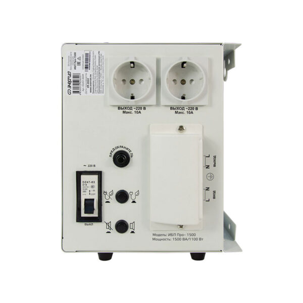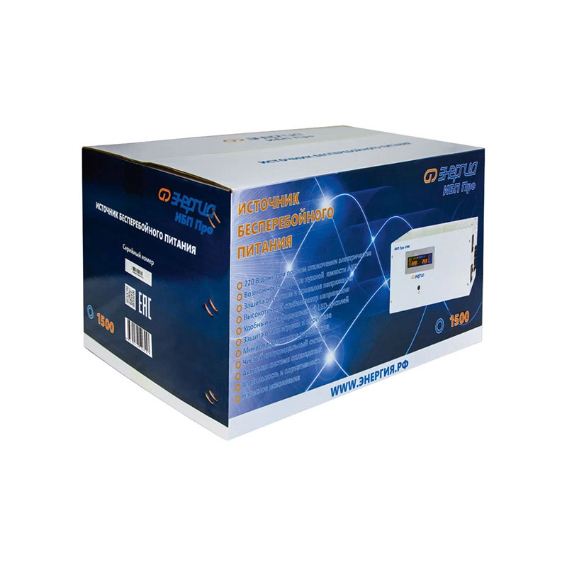 ИБП Про-1500 Энергия — это современное устройство, которое обеспечивает надежное электроснабжение и защиту вашего оборудования. Особенностью данного источника бесперебойного питания является выдача электрического тока чистой синусоидальной формы, что обеспечивает безопасность и стабильность работы подключенной техники.