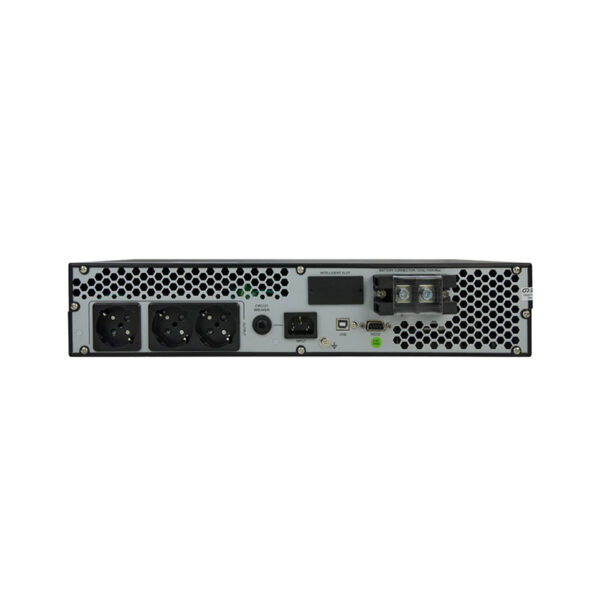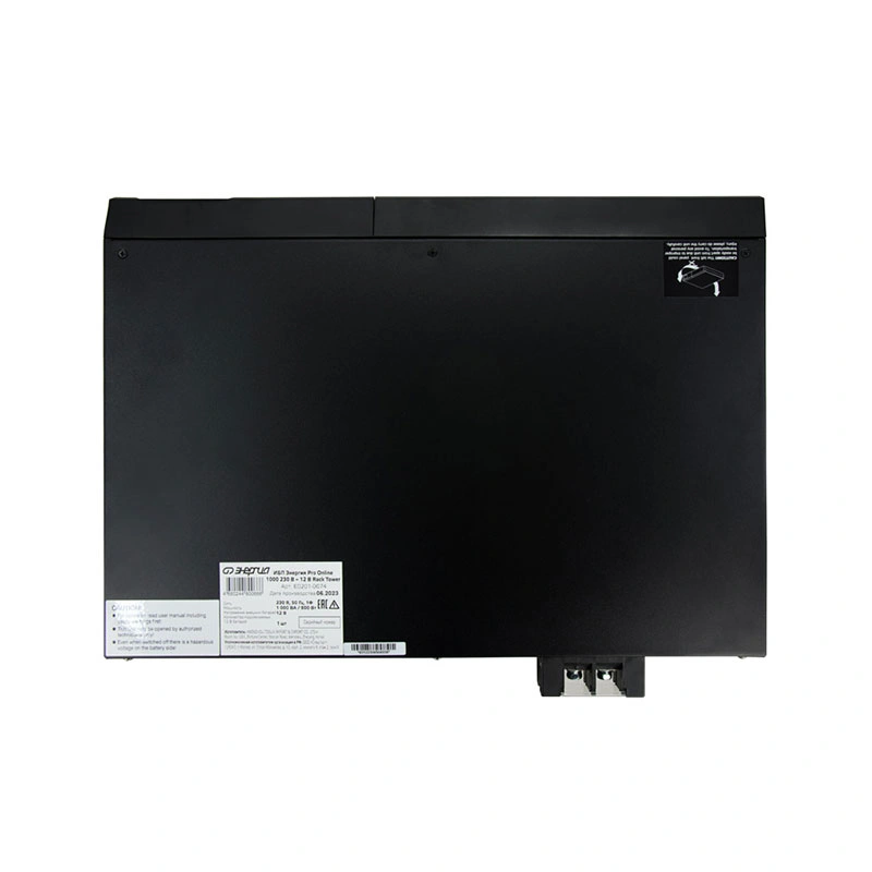 Номинальная мощность: 1000ВА/800Вт Диапазон входного напряжения: 110-300В Настраиваемое выходное напряжение: 208/220/230/240 В (по умолчанию 230 В) Форма напряжения: чистая синусоида Точность стабилизации напряжения: ±1% Напряжение батареи аккумуляторов: 12 В Количество аккумуляторов 12 В: 1 шт. (внешние) Тип батареи (не входит в комплект): Свинцово–кислотная всех типов (WET, AGM, GEL) Время переключения режимов работы: 0 мс Входная цепь: блочная вилка С14 Выходная цепь: 3 розетки тип F Подключение внешних батарей: клеммная колодка Связь с ПК: RS232, USB, ModBus|SNMP (опционально) Высота установки в стойку: 2U
