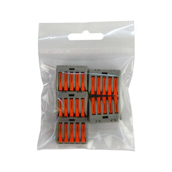 Безвинтовая клемма позволяет соединять до восьми проводников.