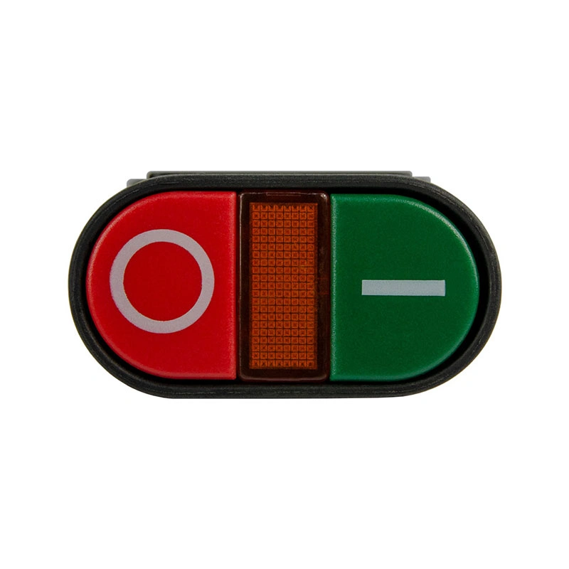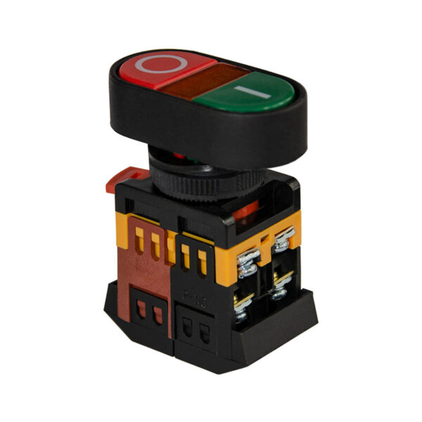 Двойная, овальная со световым неоновым индикатором кнопка управления серии APBB-22N используется для оперативного контроля в электрических цепях. Корпус объединяет две независимые кнопки — красного и зеленого цветов, что обеспечивает визуальное различие функций. Механизм действия самовозвратный — после нажатия кнопка автоматически возвращается в исходное положение.