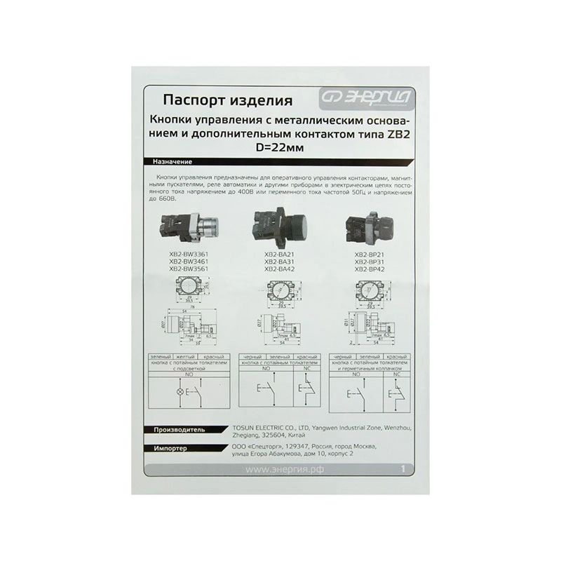Кнопки управления серии XB2-BА31 служат основным средством оперативного контроля в электрических цепях. Они применяются в цепях переменного тока до 400В и постоянного тока до 220В для следующих операций: