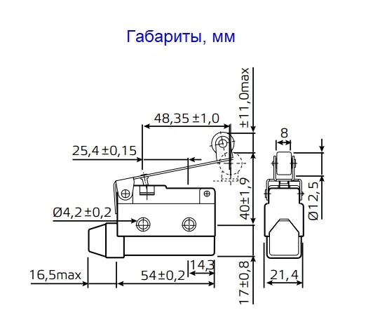| Тип контактов | 1 нормально открытый (NO) + 1 нормально закрытый (NC) |