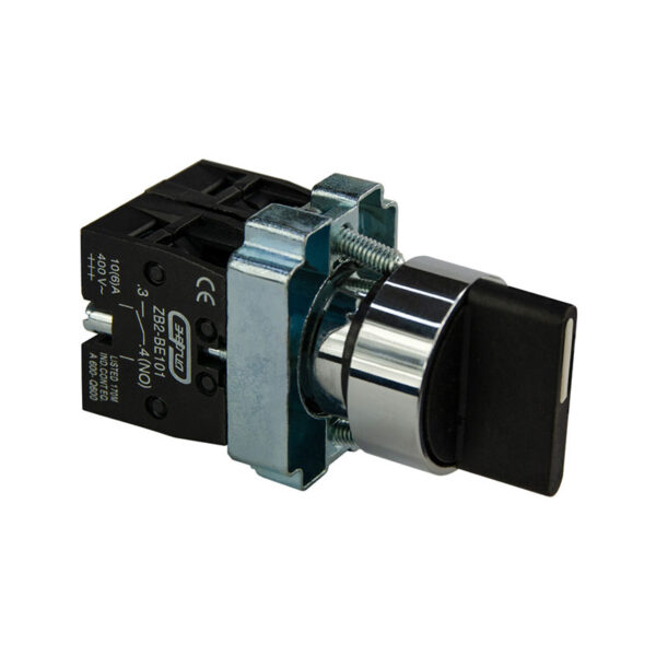 Переключатель выполнен в прочном и компактном корпусе, что обеспечивает его надежность и долговечность. Стандартная ручка позволяет оператору легко и быстро переключать режимы работы. Механизм оснащен двумя нормально открытыми (НО) контактами, что позволяет одновременно управлять несколькими цепями, увеличивая функциональность устройства. Механизм с возвратом в нейтральное положение обеспечивает безопасность и предотвращает случайное включение.