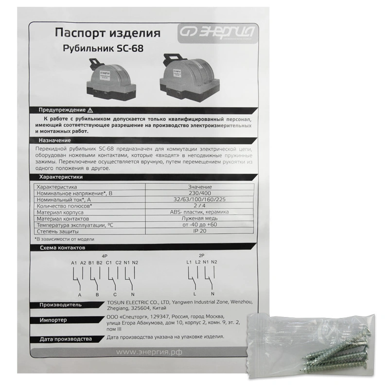 Разъединитель SC-68 Энергия — это аппарат ручного управления, основная задача которого состоит в создании видимого разрыва электрической цепи при отсутствии тока или минимальной нагрузке. Конструкция аппарата основана на ножевом контакте: подвижная часть плавно входит в пружинные зажимы, обеспечивая надежное соединение. Перевод рукоятки в положение «отключено» формирует четкий изоляционный промежуток, гарантирующий безопасность при обслуживании линии.