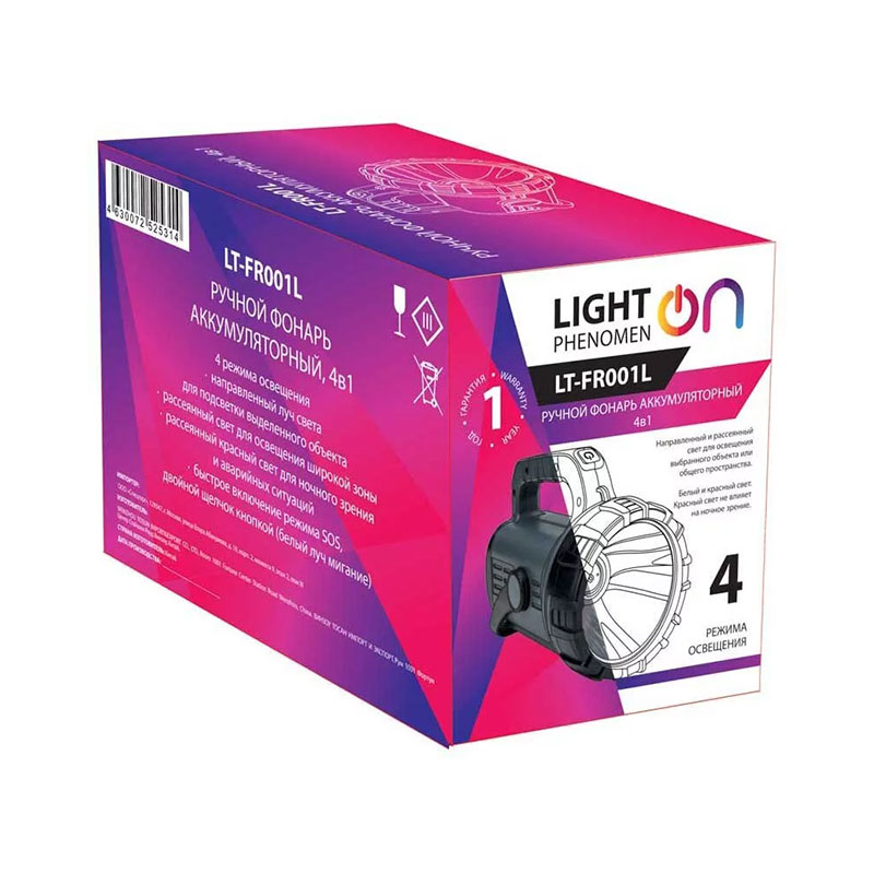 Тип питания: литий-ионный аккумулятор (входит в комплект) Емкость: 1200 мА*ч Напряжение DC: 3,7 вольт Макс. освещенность (рассеянный свет): до 350 лм Площадь освещения (рассеянный свет): до 32 м2 Суммарная мощность светодиодов: 5 Вт Макс. освещенность (направленный луч): до 350 лм Длина луча (направленный луч): до 290 м Суммарная мощность светодиодов: 5 Вт Диапазон рабочих температур: –10 … +35 °С Степень защиты от пыли и влаги: IP43 (защита от крупной пыли, песка и т.п. + защита от дождя, капель и брызг, падающих по вертикали или до 60° к вертикальной оси корпуса изделия) Габаритные размеры изделия: 120 х 145 х 205 мм Вес нетто изделия: 498 г Гарантия: 12 мес.
