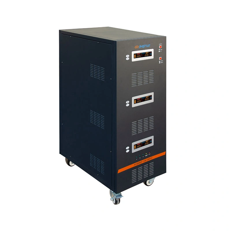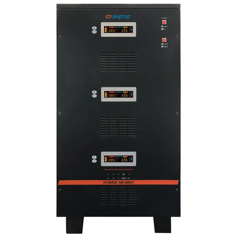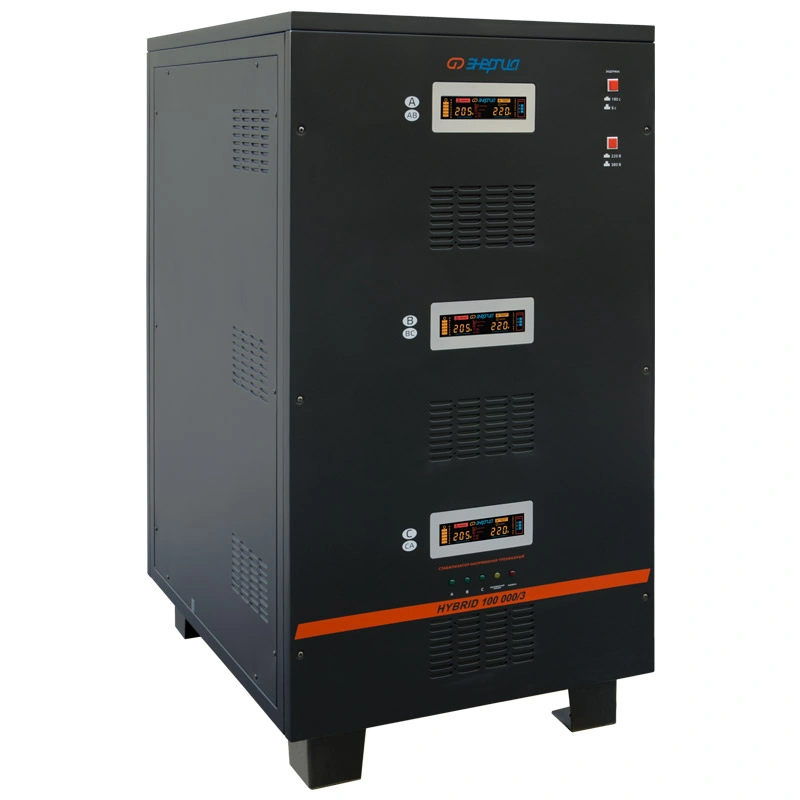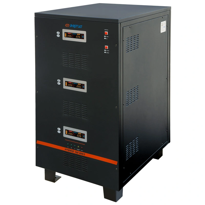 Основная задача стабилизатора напряжения Энергия серии Hybrid II поколения — обеспечить бесперебойное и качественное электропитание для широкого спектра оборудования в условиях нестабильных сетей. Он эффективно защищает подключенные устройства не только от длительных и значительных отклонений напряжения от нормы, но и от кратковременных высоковольтных импульсов и высокочастотных помех. Аппарат использует комбинированный метод регулировки, который переключается между релейным и сервоприводным (электромеханическим) принципами в зависимости от уровня входного напряжения.