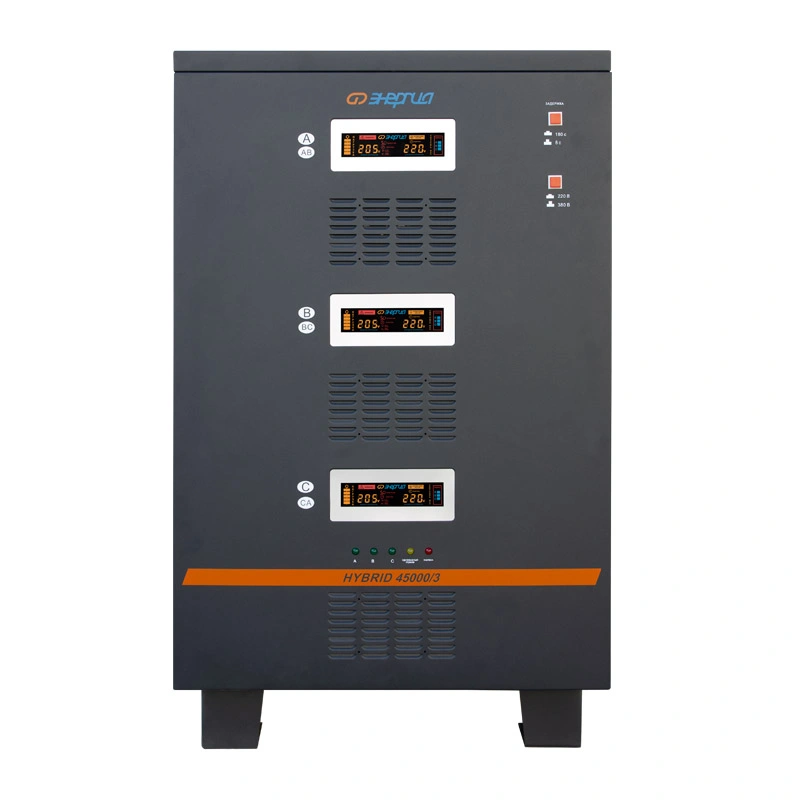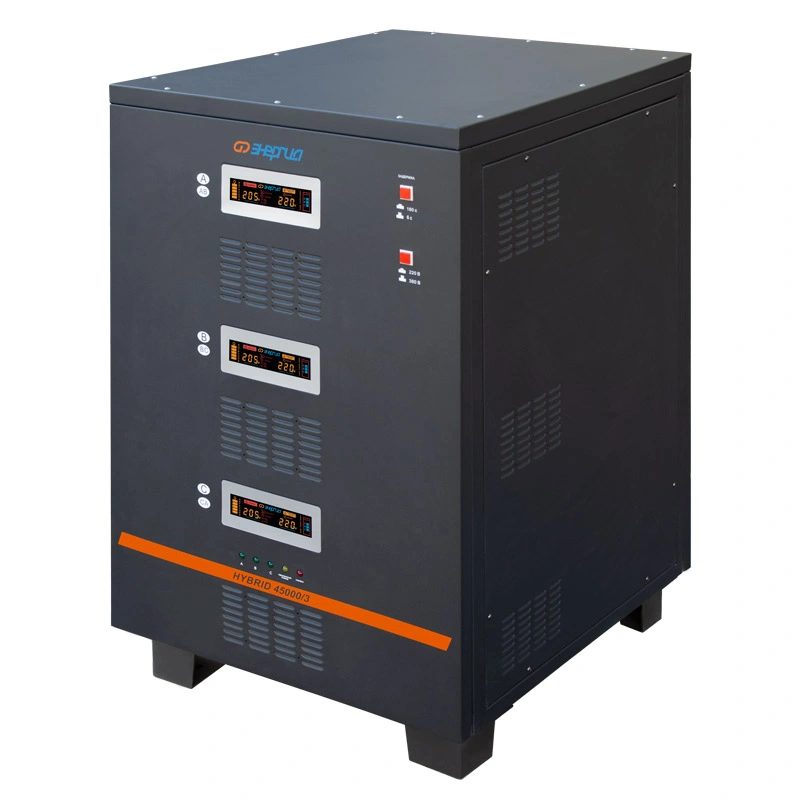 Основная задача стабилизатора напряжения Энергия серии Hybrid II поколения — обеспечить бесперебойное и качественное электропитание для широкого спектра оборудования в условиях нестабильных сетей. Он эффективно защищает подключенные устройства не только от длительных и значительных отклонений напряжения от нормы, но и от кратковременных высоковольтных импульсов и высокочастотных помех. Аппарат использует комбинированный метод регулировки, который переключается между релейным и сервоприводным (электромеханическим) принципами в зависимости от уровня входного напряжения.