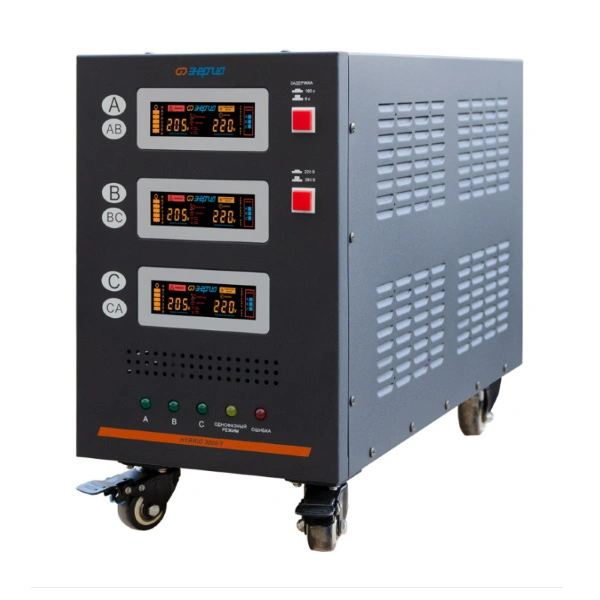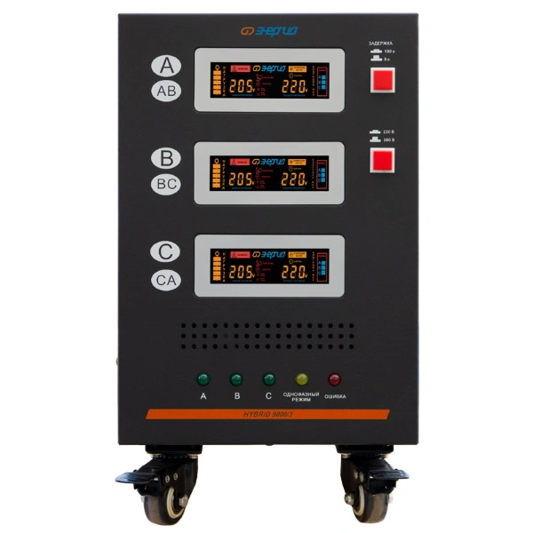 Основная задача стабилизатора напряжения Энергия серии Hybrid II поколения — обеспечить бесперебойное и качественное электропитание для широкого спектра оборудования в условиях нестабильных сетей. Он эффективно защищает подключенные устройства не только от длительных и значительных отклонений напряжения от нормы, но и от кратковременных высоковольтных импульсов и высокочастотных помех. Аппарат использует комбинированный метод регулировки, который переключается между релейным и сервоприводным (электромеханическим) принципами в зависимости от уровня входного напряжения.