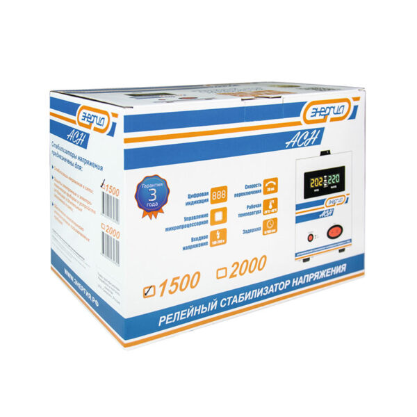 Он обладает такими несомненными достоинствами как компактность и расширенный модельный ряд. Стабилизатор оснащен микропроцессором, обеспечивающим скорость переключения реле в 2–4 раза быстрее других стабилизаторов релейного типа. Блок самотестирования и интеллектуальная программируемая защита значительно повышают надёжность и продлевают срок службы стабилизатора. Мощность стабилизаторов ЭНЕРГИЯ АСН достигает 20 кВа, при этом даже модели большой мощности легко размещаются на небольшом пространстве. Выходное напряжение стабилизатора автоматически поддерживается в диапазоне величин от 207В до 233В, что соответствует требованиям на предельно допустимые значения отклонения напряжения электропитания по ГОСТ 13109-97 «Нормы качества электрической энергии в системах электроснабжения».