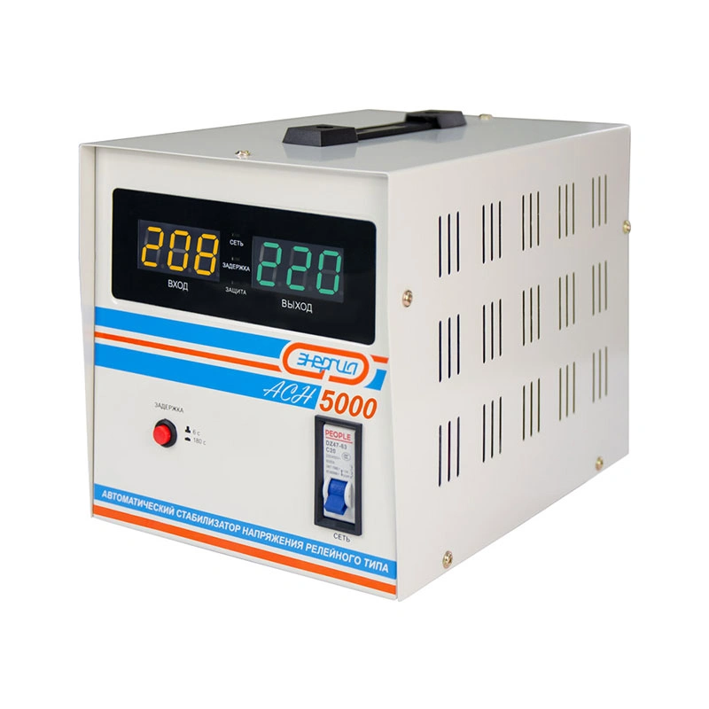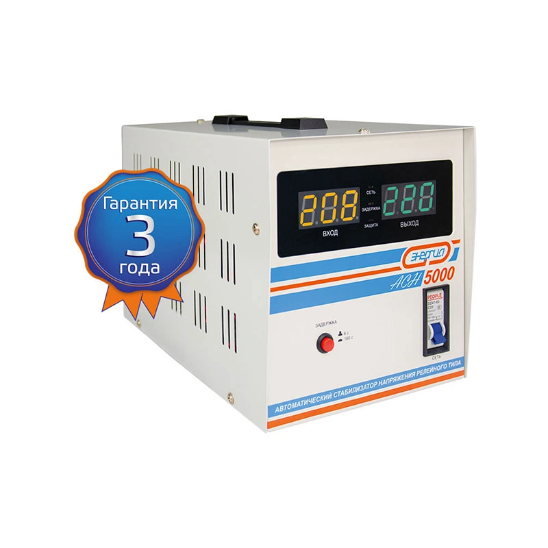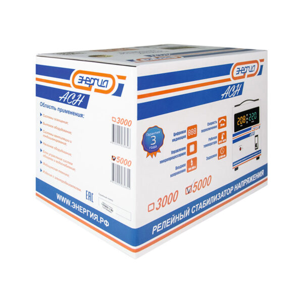 Релейный однофазный стабилизатор напряжения переменного тока предназначен для стабилизации переменного напряжения в сети электроснабжения для потребителей бытового и аналогичного назначения. Изделие относится к классу автотрансформаторных стабилизаторов со ступенчатым регулированием напряжения путем переключения отводов силового автотрансформатора с помощью электромеханических силовых реле, таким образом стабилизаторы Энергия АСН регулируют напряжение по релейному принципу.