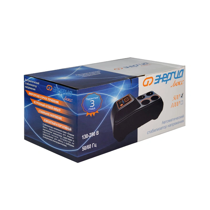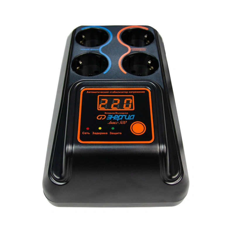 Автоматический стабилизатор напряжения Энерия Люкс предназначен для поддержания стабильного напряжения в бытовых элеткросетях с номинальным напряжением 220В. Устройство имеет несколько уровней защиты подключенного оборудования. После устранения причины, приведшей к срабатыванию защиты, устройство будет автоматически перезапущено, и на выходные цепи будет подано стабилизированное напряжение.