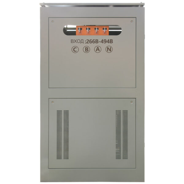 Максимальная полная мощность нагрузки (длительный режим): 400 кВА | 320 кВт Диапазон входного напряжения (фазного/линейного): 154-286 В | 270-490 В Максимальный входной фазный ток: 701,8 А Номинальное выходное фазное/линейное напряжение: 220/380 ±3 В Точность стабилизации: 3% Диапазон выходного фазного/линейного напряжения: 213-227 В | 368-391 В Максимальный выходной фазный ток: 579,7 А Скорость регулирования: не менее 20 В/с Входная и выходная цепь: шина