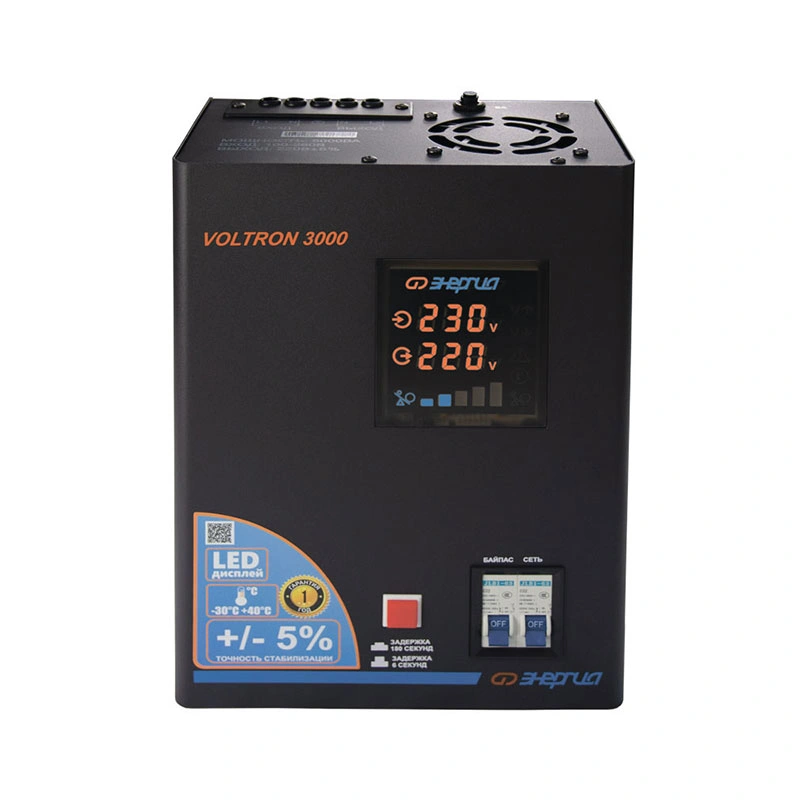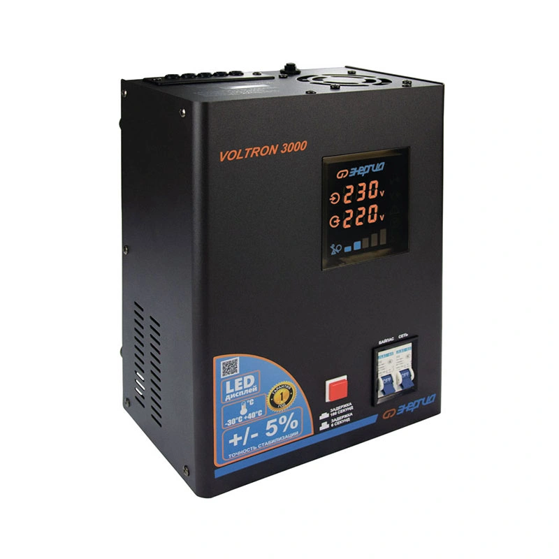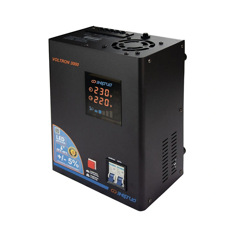 Стабилизаторы напряжения ЭНЕРГИЯ Voltron представляют собой надежное решение для обеспечения стабильной работы электрооборудования в условиях нестабильного напряжения. Наиболее значимые эксплуатационные преимущества данной серии — широкий рабочий температурный диапазон, в том числе режим до -30°C, и точность стабилизации на уровне ±5%.