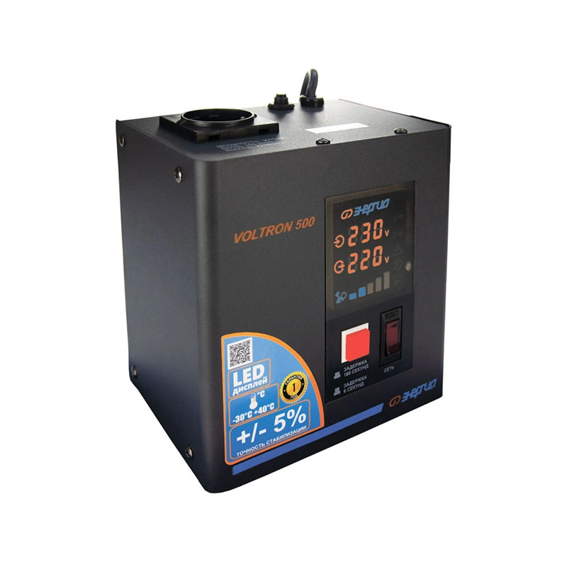 Стабилизаторы напряжения ЭНЕРГИЯ Voltron ориентированы на эксплуатацию в сложных климатических условиях. Аппарат сохраняет работоспособность при температурах до –30°C, что позволяет рекомендовать его для неотапливаемых помещений и регионов с холодным климатом, что формирует его основное преимущество для использования на дачах, в загородных домах и на промышленных объектах с непостоянным отоплением.