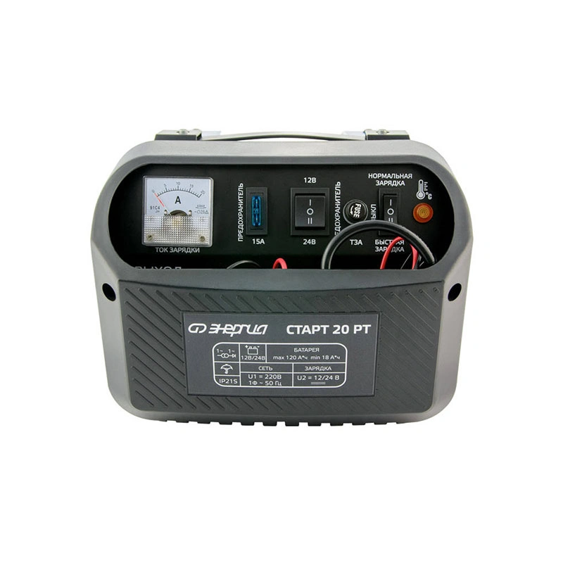 Трансформаторное зарядное устройство оснащено индикатором тока заряда и может работать в двух режимах заряда: быстрый и нормальный.