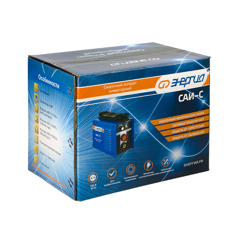 Сварочные аппараты инверторные «Энергия САИ — С» предназначены для ручной сварки электродами постоянным током. В основу работы прибора заложены современные технологии, обеспечивающие стабильное горение сварочной дуги, ее легкий поджиг, а также целый ряд других преимуществ.