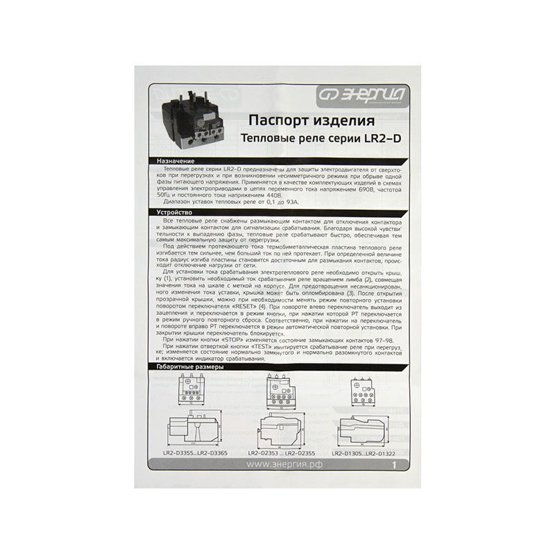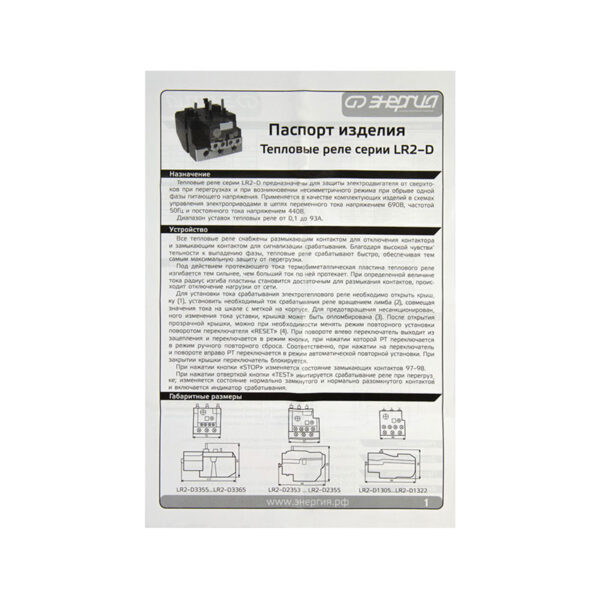 Тепловые реле серии LR2 предназначены для защиты электродвигателя от сверхтоков при перегрузках и при возникновении несимметричного режима при обрыве одной фазы питающего напряжения.