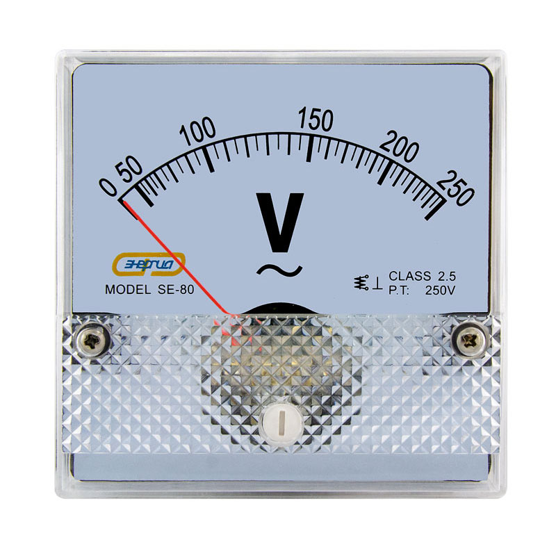 Вольтметр SE-80 «Энергия» — это классический прибор, предназначенный для измерения напряжения в электрических цепях. Он отличается высокой точностью и надежностью, что делает его популярным выбором как для профессионалов, так и для любителей. Класс точности 2.5 указывает на допустимую погрешность измерений в пределах 2.5% от максимального значения шкалы. Искажение синусоидальности свыше 1% приводит к дополнительным погрешностям. Установка осуществляется на стандартную щитовую панель размером 80 × 80 мм.