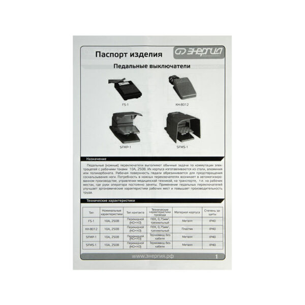 Металлический выключатель FS-1, имеющий резиновое противоскользящее покрытие служит для включения и выключения электрических цепей в различных устройствах. Активация происходит посредством нажатия на педаль, что приводит в действие контактную группу, обеспечивая размыкание или замыкание. Для предотвращения скольжения и обеспечения стабильного контакта с обувью оператора, выключатель имеет нескользящую резиновую площадку. Педальное управление позволяет управлять оборудованием, освобождая руки для других операций, что способствует увеличению производительности труда.